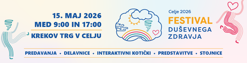 V petek, 15. maja 2026, bo Celju potekal Festival duševnega zdravja, namenjen spodbujanju skrbi za duševno zdravje in ozaveščanju o pomenu preventive. Med 9. in 17. uro bo na Krekovem trgu in v Narodnem domu na voljo pester brezplačen program za različne generacije, tudi za mladostnike, študente in starše.