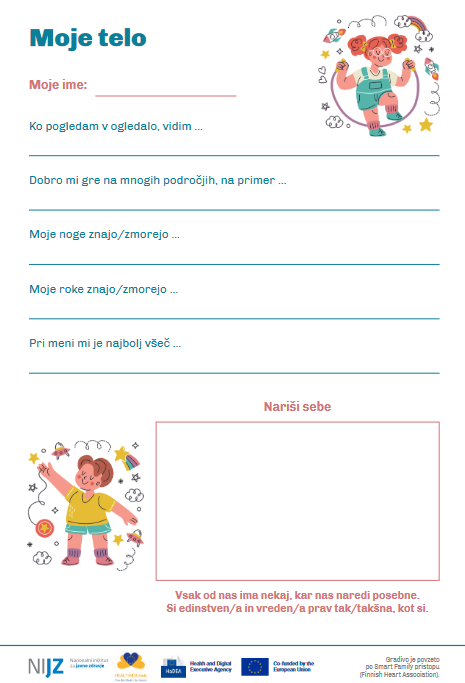 Skupaj z otrokom izpolnite delovni list za krepitev pozitivne samopodobe